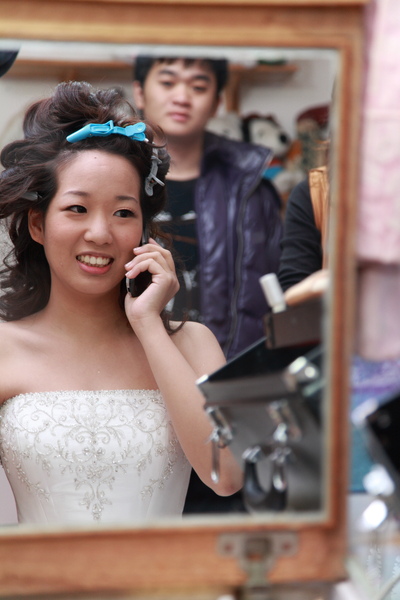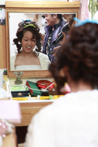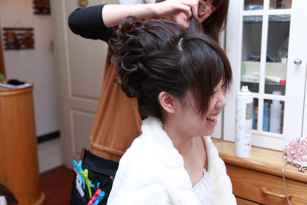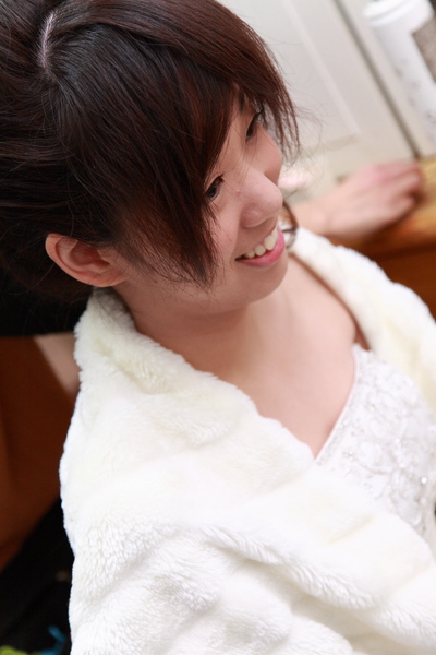 。我的頭髮還沒弄好,頭紗還沒放,新郎已經到了。