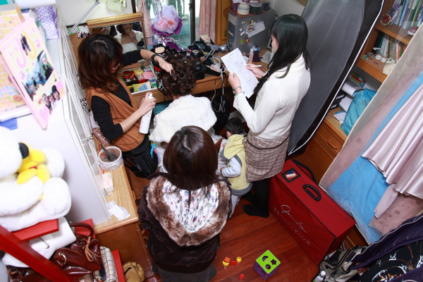 因為新郎太準時出發了,所以我們女方可以說是一團混亂!!!聽到嘰咕比出發了,我還在弄睫毛,白紗也沒換,更別說頭髮了...大家都很慌亂,我很慶幸,今天我不用擔心要穿什麼衣服,這一點可以讓我鬆了一大口氣!!
