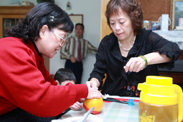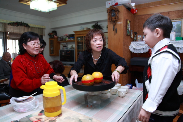 。任花枝超認真的在聽阿姨教他端橘子,是說你都看不出來他是站在椅子上面,一副大人的樣子。