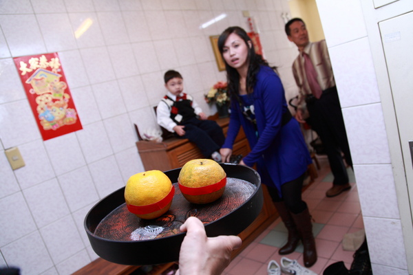 。花枝雖然端橘子,但是還是有敬業的看鏡頭,真愁苦。