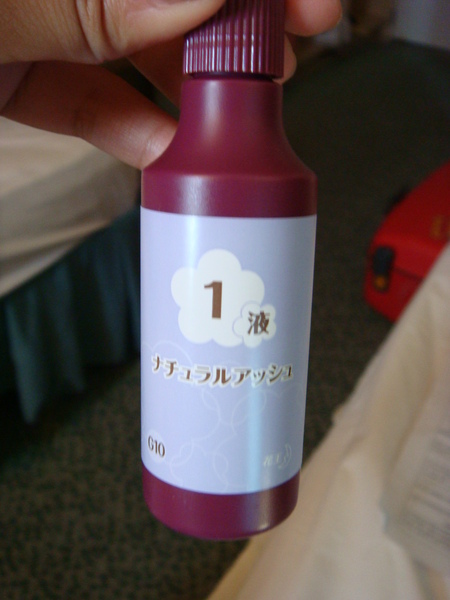 回到房間我也不想休息,很想找些事情做做,結果就拿出在藥妝店買的染髮劑,開始染起髮來,哈!!