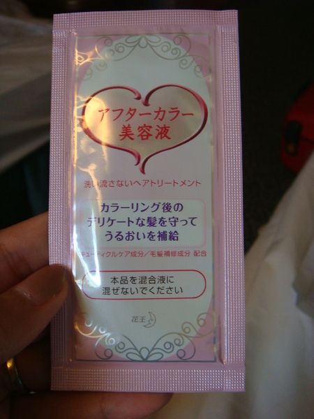 ::這啥咪東東??我也是有看沒有懂,不過我猜應該是染完髮以後用來護髮的吧??因為不懂所以到現在都沒有用,怕弄錯,好心的路人可以再幫我翻譯一下嗎::