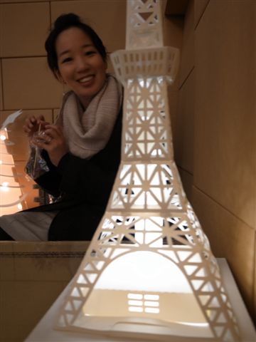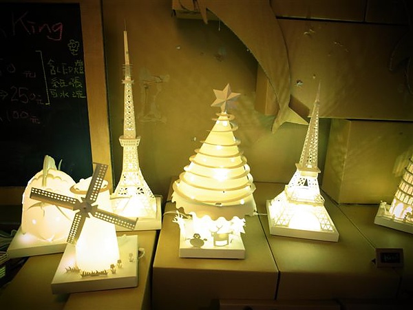 ::店裡面有好多紙做的東西,有巴黎鐵塔、東京鐵塔、比薩斜塔,都好可愛好精緻,店員說這些紙做的東西髒了還可以用水洗哩::