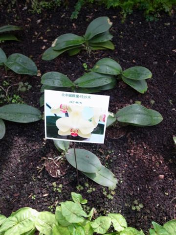 ::拉近一點,發現每株蘭花都只有照片,一隻花都沒有!我跟嘰咕比說,這樣回家看Discovery就好啦~幹嘛來蘭花園::