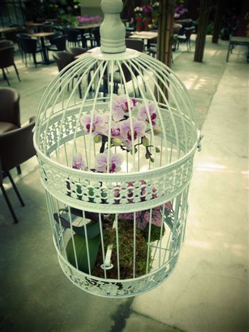 ::把蘭花裝在鳥籠裡面~很有中國風哩::